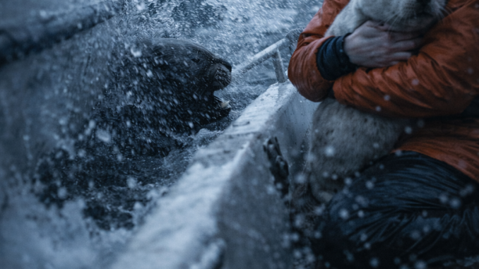 Suddenly, the seal surged upward beside the boat, rising almost vertically out of the black sea. Massive. Powerful. Its jaws opened wide and a deep, guttural roar tore through the fog.