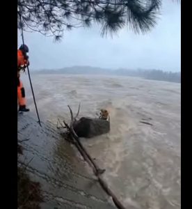 This dramatic rescue serves as a reminder of the dedication of emergency responders and the importance of protecting animals during natural disasters. The video has since been widely shared, inspiring viewers with a powerful message of humanity and hope.