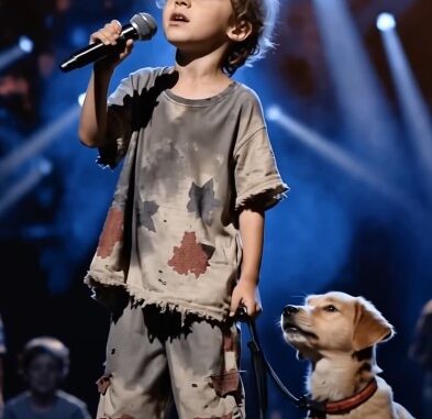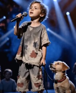 Under a sky of blazing lights, in a world that often demands polish and perfection, a 7-year-old boy walked onto the stage of America’s Got Talent dressed in nothing but worn, stained clothes. At his side was a puppy, faithful and still, as if the little dog understood that this was no ordinary moment. Together, they stepped forward—boy and dog, innocence and loyalty—into a silence that seemed to hold its breath.