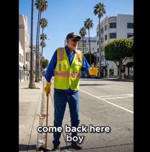 But as they slow down near a street cleaner—a man quietly doing his job, keeping the road clean—they decide to do something careless and unkind. One of the girls rolls down the window and throws trash right in front of his feet.