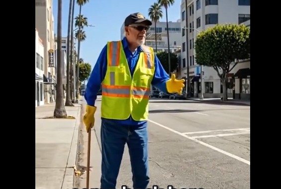 The street cleaner continues sweeping quietly, unaware of the silent lesson happening behind him.