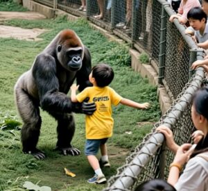 The massive gorilla rose, his shadow falling over the small child. The crowd’s fear became a tidal wave. Some turned away, unable to watch. Others prayed. In that tense moment, the bustling sounds of the zoo environment vanished into silence.