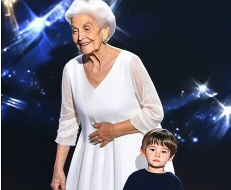 She wore white, like a whisper from another time. Graceful. Regal. Her silver hair softly framed her face as she stepped onto the stage with a little boy — maybe her grandson, maybe someone else’s child, but surely her heart.