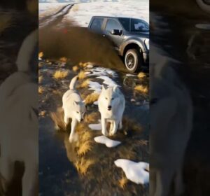 Suddenly, out of the trees, the gray wolves emerged the pup’s family. At first, the man froze, unsure if he was in danger. But instead of attacking, the wolves circled the area, watching him with eyes filled with desperation, as if they knew he was their pup’s only chance of survival.