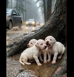 When he stepped out of the car, he heard a faint sound—soft, fragile cries struggling to rise above the rain. He walked closer and gently opened the box. Inside were three newborn Labrador puppies. Their eyes were still closed, their tiny bodies shivering, their fur heavy with water and cold.