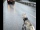 As he approached a quiet stretch of the street, something caught his eye. On the side of the road sat a soaked cardboard box, barely holding its shape in the rain.