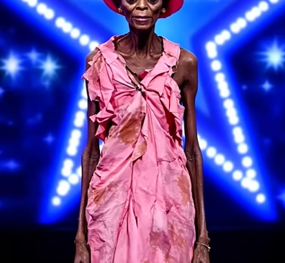 When the old woman stepped onto the America’s Got Talent stage, silence fell. She was frail, her bones showing through her thin frame, yet she wore a bright pink dress that looked torn and worn, as though it carried decades of stories. On her head sat a hat of the same color, tilted slightly to one side. But it wasn’t her outfit that struck the audience first—it was her eyes. Wide, intense, and unblinking, they seemed to pierce right through every soul in the room.