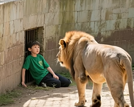 Every heart seemed to stop as the great beast, golden mane glistening under the sun, began walking toward him. Cameras shook in trembling hands, some people unable to look, convinced they were about to witness a tragedy. The boy pressed his back against the wall, his wide eyes locked on the animal moving closer with steady, deliberate steps.