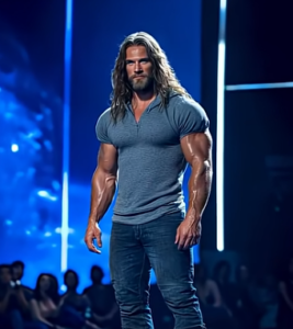 The stage was buzzing with nervous anticipation, the crowd whispering as the next contestant stepped forward. At first glance, he looked like any other man—a rugged figure in a simple t-shirt and jeans, his long hair cascading over broad shoulders. Yet, there was something about him, something that silenced the audience the instant he appeared.