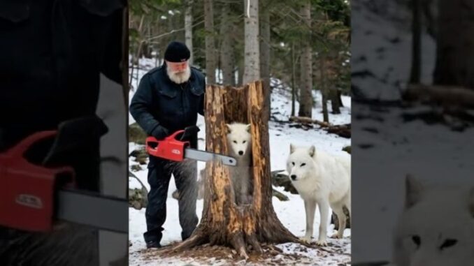 In a world where wild animals and humans rarely see eye to eye, one heartwarming encounter broke through the barriers of fear and instinct. Deep in a remote forest, a rare snow-white wolf did the unthinkable—she placed her trust in a human to save her helpless pup.