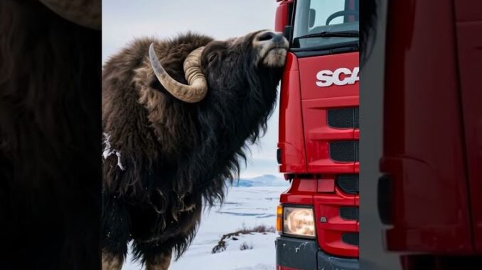 Just as hopelessness began to set in, the driver noticed movement in the distance. Out of the swirling snow emerged a massive musk ox. Known for their strength and resilience in harsh climates, these creatures rarely approach humans. Yet, this one seemed determined. Instead of leaving, the musk ox circled the vehicle, as if sensing the danger the man was in.