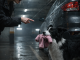 Pedestrians moved through the intersection under traffic lights as a police officer approached the scene carrying a paper takeout bag and a folded blanket.