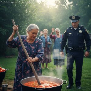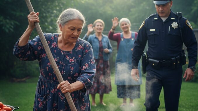 The officer—young, polite, but with a stiffness in his voice—stepped into the yard. “We received a complaint,” he said. “Unusual smell. Possible illegal activity.”
