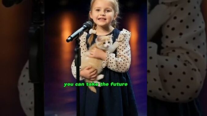The stage lights dimmed, and the crowd fell silent. From behind the curtain walked a tiny girl, no older than seven, wearing a simple white dress and beside her, trotting gracefully, was a fluffy gray cat with bright green eyes. The audience murmured in surprise. A child and a cat? No one had ever seen something like this before.