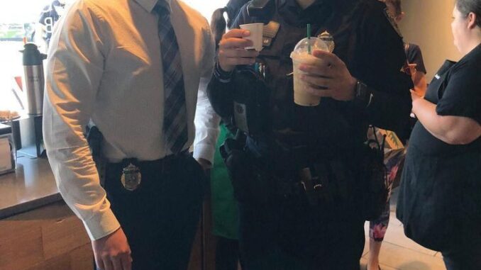 It actually said: “FREE COFFEE FOR ALL POLICE OFFICERS. THANK YOU FOR YOUR SERVICE.”