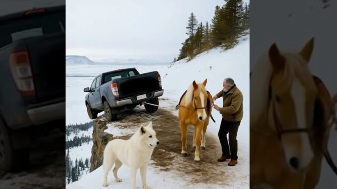 Standing strong against the biting wind was a horse. Horses are symbols of loyalty and courage, but no one expected this animal to respond to the wolf’s signal. Yet, driven by instinct or something greater, the horse approached the edge of the icy lake where danger awaited.