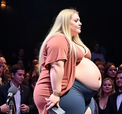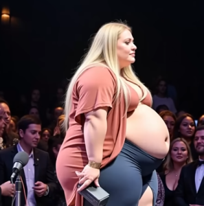 From behind the curtains, she emerged — a woman carrying more than just her dreams. Her long blonde hair flowed gently over her shoulders, and her confident steps contrasted with the visible weight she bore. Dressed in a flowing gown, slightly torn from its seams, she walked with the grace of someone who had faced storms and learned to dance in the rain.