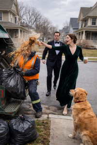 It started like any ordinary morning in a quiet suburban neighborhood. A sanitation worker was doing his job, lifting heavy trash bags and clearing the street. Then a wealthy couple, dressed for an elegant event, walked by.