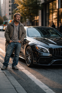 On a quiet afternoon in the city, a poorly dressed man stood beside a sleek, imported luxury car. His clothes were worn, his shoes dusty, and his posture relaxed but unnoticed. To most people passing by, he looked like someone who didn’t belong near such an expensive vehicle.