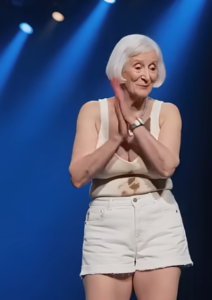 When the stage lights turned blue and a small elderly woman stepped into the spotlight, the audience did not know what to expect. She was dressed simply, in a pair of shorts and a sleeveless top, with her silver hair shining under the lights. At first glance, some spectators assumed her performance might be lighthearted or even humorous. But what followed was a moment of pure inspiration, proving that talent, courage, and spirit have no age limit.