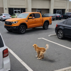 Cars sat in neat rows under the open sky. In the middle of it all stood a golden-colored dog — still, alert, and watchful. Its eyes scanned every movement. Its body stayed firm, as if guarding something only it understood.