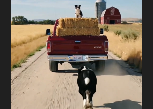 Behind the vehicle, the dog was still running—refusing to stop, refusing to give up. The farmer immediately slowed down and brought the jeep to a halt. When he stepped out, the reason became clear.