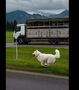 A peaceful country road suddenly turned into a race against time when a loyal white dog began chasing a moving truck with everything it had.