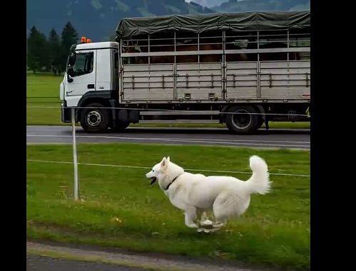 A peaceful country road suddenly turned into a race against time when a loyal white dog began chasing a moving truck with everything it had.