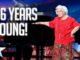 Wearing a simple, old-fashioned floral dress and with her silver hair pulled back neatly, she didn’t arrive with a flashy entrance or dramatic fanfare. She walked slowly, gracefully, and stood behind the microphone with the kind of calm only someone who has seen a century of life can carry.