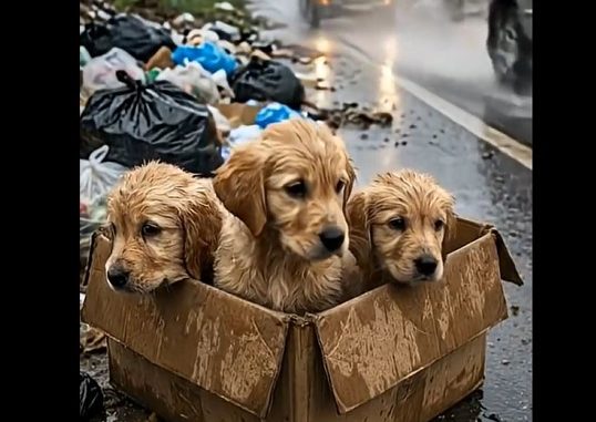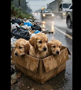 On a cold, rainy afternoon, three tiny puppies were abandoned by the roadside, thrown into a package and left to fend for themselves. Their little bodies shivered under the relentless rain, and the sound of the storm drowned out their soft whimpers.