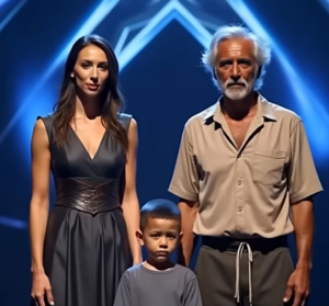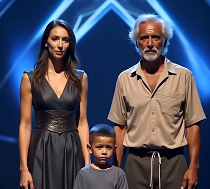 The stage lights dimmed, and the audience fell into a quiet hush. From the shadows emerged a family unlike any other—a little boy with wide, innocent eyes, a graceful woman exuding strength and elegance, and an elderly man whose silver hair reflected years of wisdom and resilience. Three generations stood hand in hand, united not by fame or training, but by love, courage, and the desire to share their story through performance.