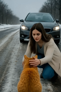 As she knelt down, the ginger cat didn’t flee. It stared at her as if asking for help, trusting her with something important.