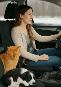 The cat led her back to the pup, still curled up in the snow. It wasn’t just coincidence — the cat had waited, watched, and now was guiding her.