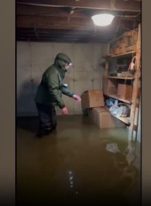What began as a routine walk in a storm quickly turned into a desperate fight for survival. A sudden flash flood overwhelmed a neighborhood, sending water rushing through homes and submerging basements. Amidst the chaos, a tiny bunny was left stranded on a high shelf, shivering and terrified, its only refuge above the chest-deep, murky waters.