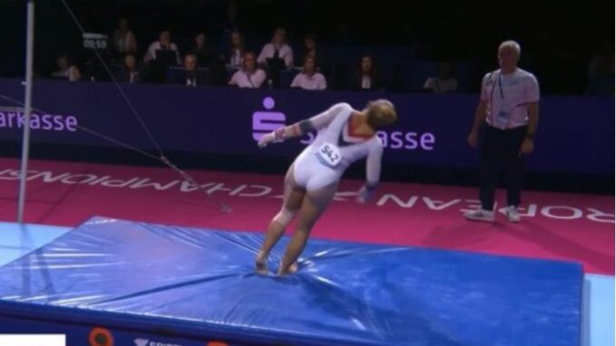 During the uneven bars final at the 2022 European Gymnastics Championships in Munich, a moment of brilliance quickly turned into heartbreak as French gymnast Lorette Charpy suffered a harrowing fall that left the arena in stunned silence.