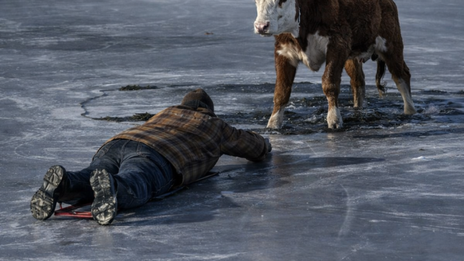 Trapped on Ice: Watch This Farmer Risk Everything to Save a Frozen Calf