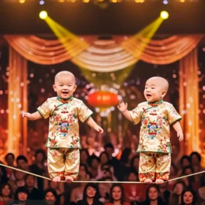 The twin boys — no names were given, only that they hailed from a small village where circus skills had been passed down in their family for generations — began their routine with remarkable poise. Despite their age, they climbed the rope without a single tremble, finding perfect balance on a wire that even seasoned performers might hesitate to face.At first, they simply walked — one foot in front of the other, synchronized, focused, steady. The crowd clapped gently, encouraged by the cuteness and courage of the scene.But the tone in the room changed completely when the twins, still perched mid-air, began to bounce.