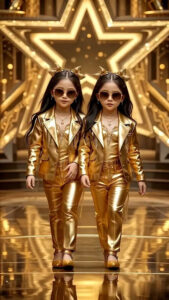 The performance began innocuously enough, with the two sisters standing side by side, dressed in simple outfits, just like any other contestants. But what followed was nothing short of magical. In a matter of seconds, the girls’ appearance started to change, as they underwent a mesmerizing physical transformation that left the audience gasping in awe.Their costumes and makeup were expertly crafted to create the illusion of growing older, shifting from innocent children to poised, confident adults.As they danced and moved in synchrony, the transformation seemed seamless, yet utterly mind-blowing.
