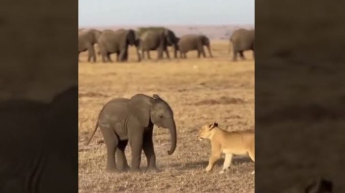 On the vast plains of the African savannah, where survival often depends on instinct and strength, moments of pure innocence and wonder can still unfold. One such moment captured the hearts of wildlife observers around the world: a baby elephant and a lion cub two animals destined by nature to be adversaries sharing an afternoon of joyful play. The sight defied expectations and reminded everyone that the natural world can be full of surprises.