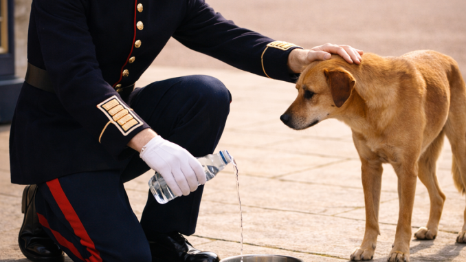He knelt down slowly, poured fresh water, added food, and gently placed his hand on the dog’s head.