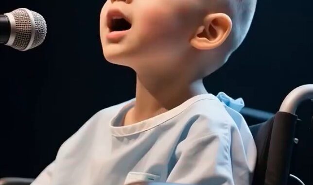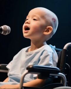 In that moment, the wheelchair vanished. The gown became a robe of light. He wasn’t a sick child anymore — he was an artist, a warrior, a messenger. His song didn’t ask for sympathy. It offered strength. It said: I’m still here. I still believe in beauty.