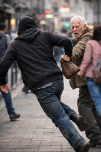 Out of nowhere, a young man rushed past him. A fast hand. A sharp pull.