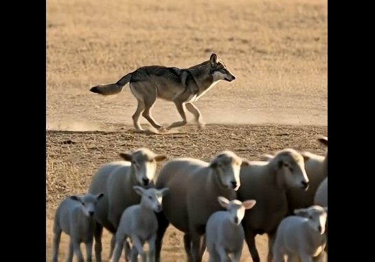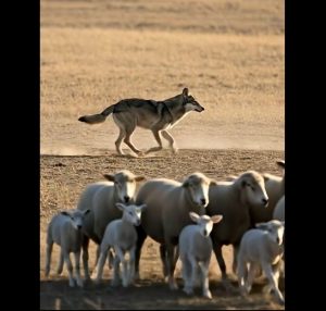 Placing himself directly between the wolf and the flock, he makes a quiet decision: