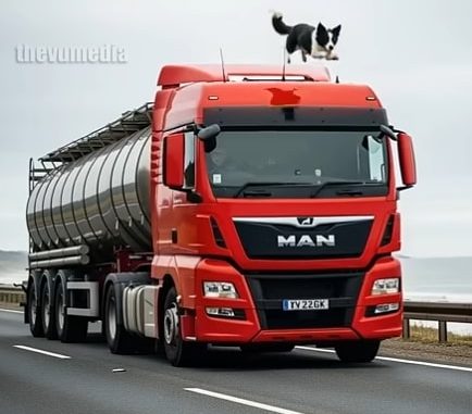 Thunder cracked across the coastal highway, rain lashed against the asphalt, and dark clouds swallowed the horizon. Jack Morrison, a long-distance truck driver, gripped the steering wheel of his massive red fuel tanker, trying to keep control as the winds howled. Beside him, his loyal border collie, Bolt, lay quietly, ears alert to every rumble of thunder.