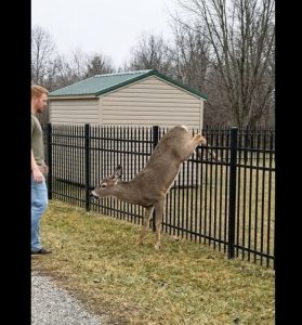 On a quiet afternoon, a young man walking through a rural area noticed unusual movement near a fence line. As he got closer, he realized a young deer was trapped—its legs tangled tightly in the metal wires, unable to move.