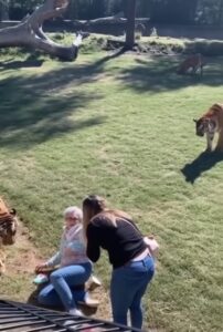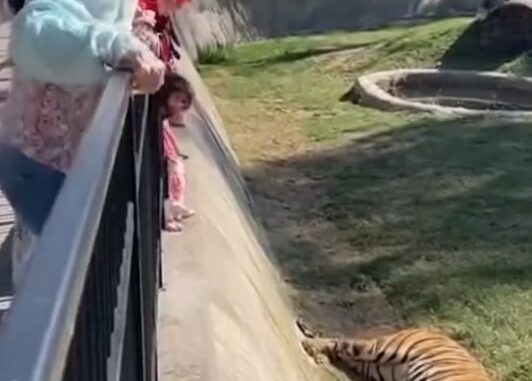 Moments later, the woman’s young niece bravely climbed down, risking her own safety to help. As she held the woman’s hand, visitors watched in awe as the tigers simply backed away and sat down peacefully, displaying a rare moment of empathy.